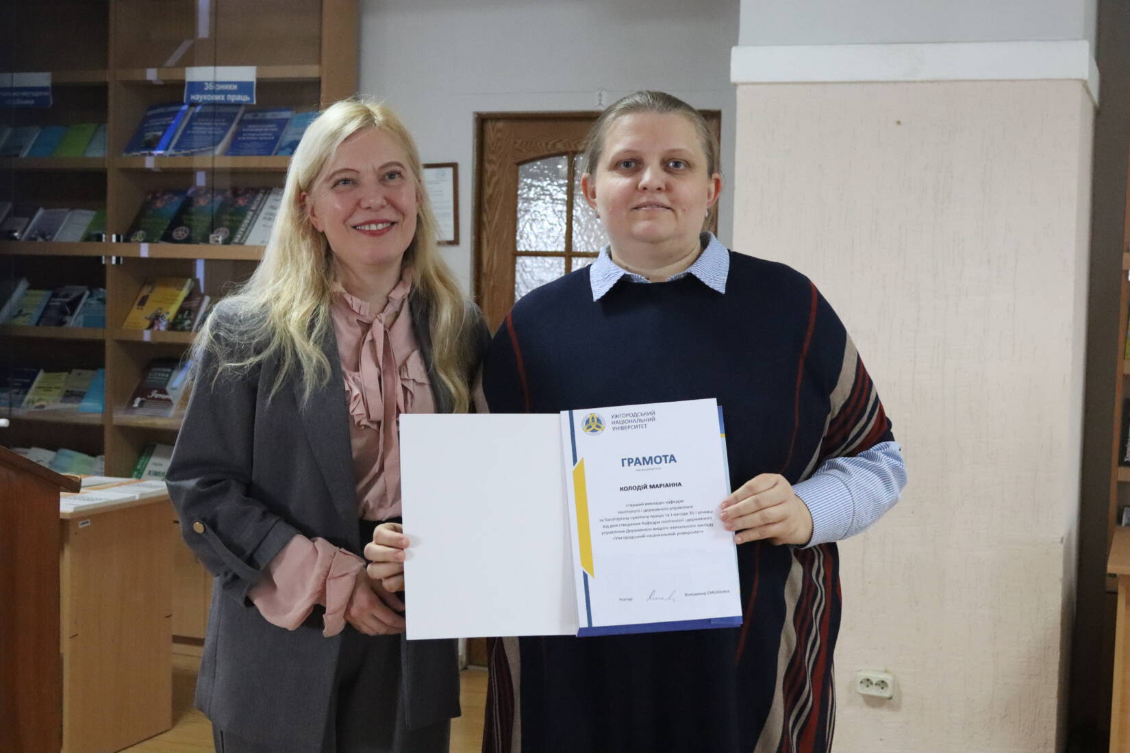 Своєю чергою, проректорка з науково-педагогічної роботи УжНУ Мирослава Лендьел вручила працівникам кафедри відзнаки ректора.
