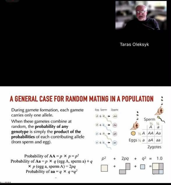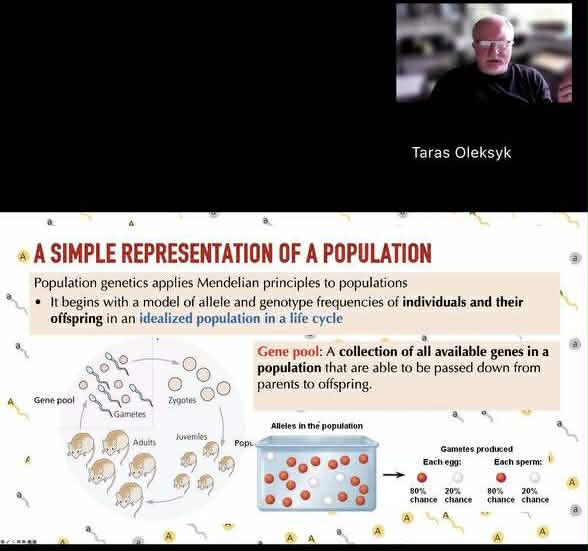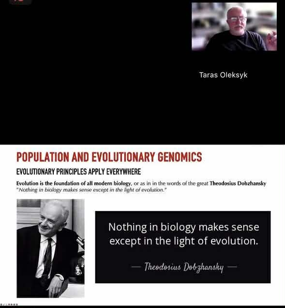 Важливим кроком у цій освітньої трансформації на біологічному факультеті став цикл лекцій «Population & Evolutionary Genomics» (PEG) в межах курсу «Вступ до геномної біології», поглиблений, дослідницько-орієнтований, який читає Тарас К. Олексик, випускник УжНУ, Fulbright Scholar, керівник і засновник ініціатив Genome Diversity in Ukraine та T1D exomes in Ukraine, а також один із провідних організаторів міжнародних воркшопів ConGen Global з геноміки і охорони природи. PEG поєднує класичну популяційну генетику з питаннями епохи нового покоління в секвенуванні.