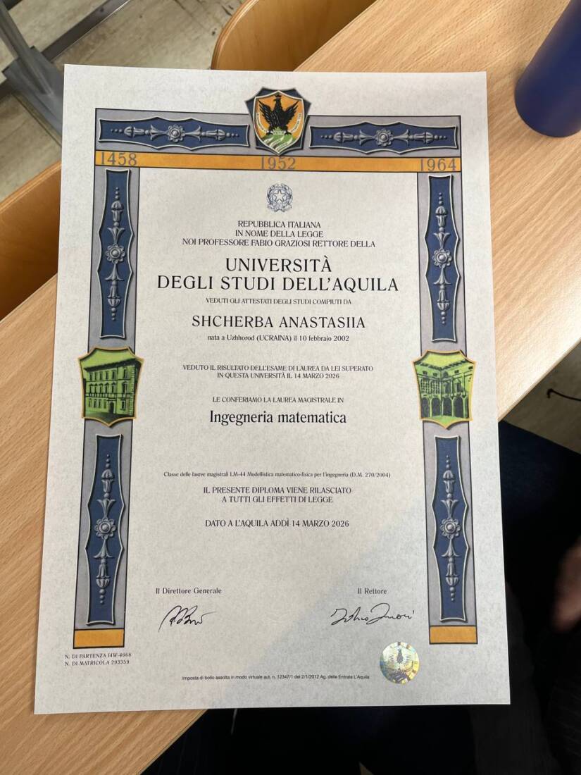 В альма-матер студенти навчалися за спеціальністю «Прикладна математика», а в італійському виші здобували другий диплом за спеціальністю «Інженерна математика».