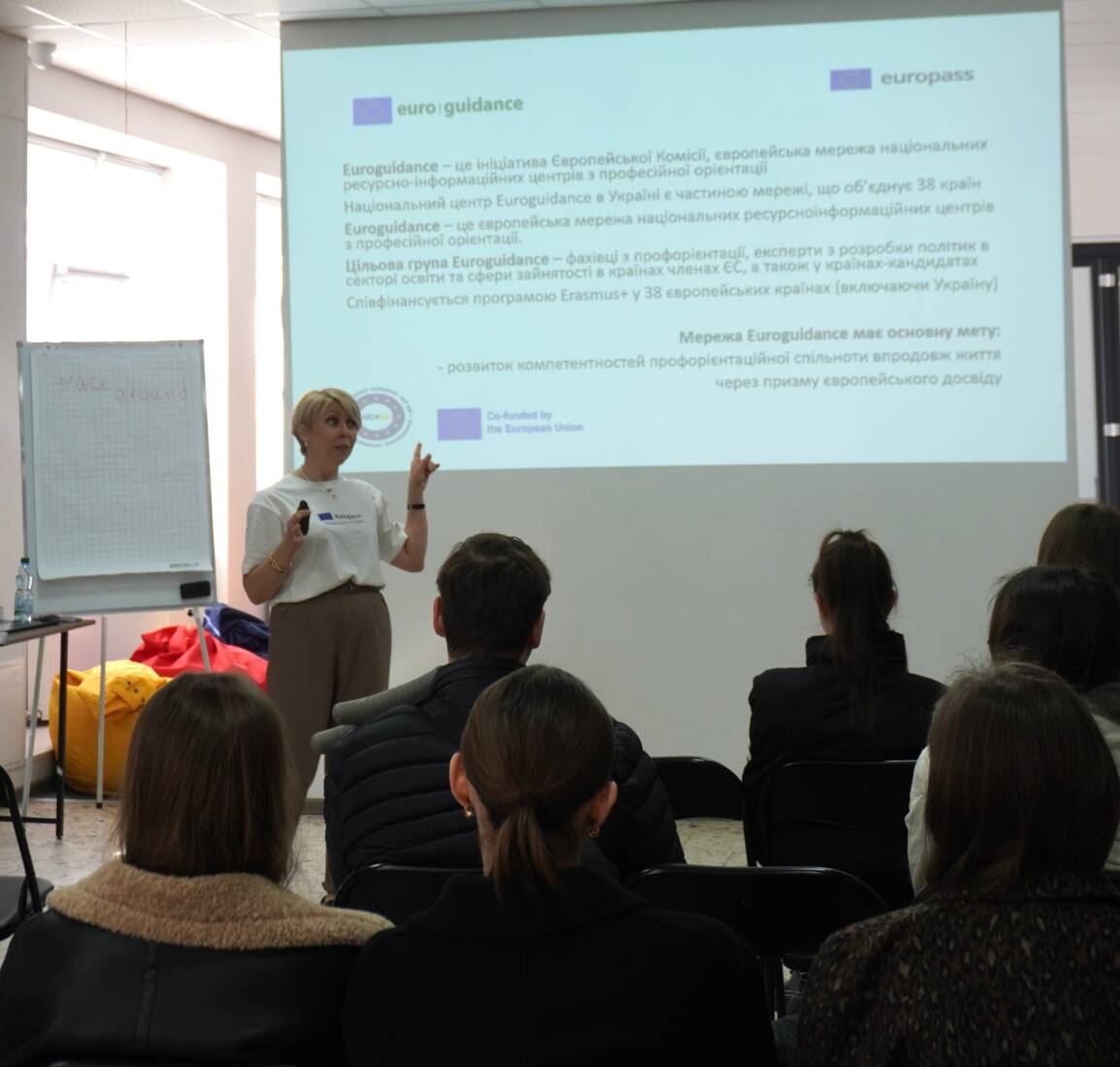 Під час тренінгу студенти дізналися про ресурси європейської мережі національних інформаційних центрів з професійної орієнтації Euroguidance і діяльністю Національного центру Euroguidance в Україні, що є частиною мережі з липня 2024 року і працює на базі Національного агентства кваліфікацій у рамках проєкту NC4UA та фінансується Європейським Союзом. Амбасадорка національних центрів Europass & Euroguidance Тетяна Бутурлакіна поінформувала студентів про можливості й ресурси платформи. Докладно ознайомитися з ресурсом можна за посиланням.