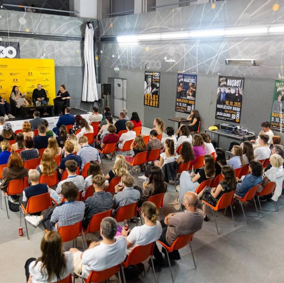 Затим відбулася лекція «Vědecká žurnalistika» з Даніелом Стахом (Česká televize) та Петром Коу́бським (Deník N). Вона зібрала повний зал і стала однією з найочікуваніших.