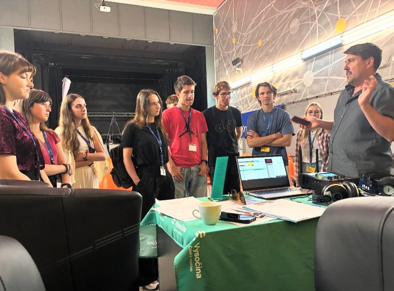 Завершальний день школи почався з візиту студентів групи «Радіо» до редакції Vysočina Rádia.