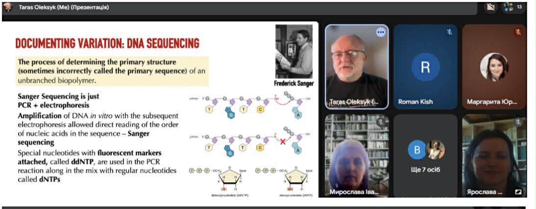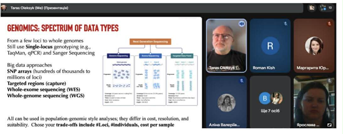 Запрошений лектор зі США Тарас Олексик допомагає студентам опанувати сучасний конвеєр обробки інформації для дальшої участі в глобальних проєктах із дослідження спадкових хвороб та еволюції