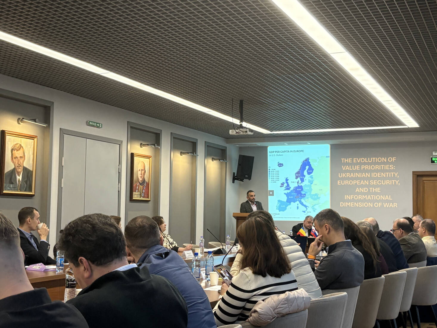 Професор Інституту технологій і бізнесу в Пряшеві Мар’ян Амброзій у своїй доповіді розповів про теоретичні аспекти війни і миру у творах Гегеля, наголошуючи на ролі держави та моральних принципах у конфліктах. Він показав, як ці ідеї можуть допомогти осмислити сучасні міжнародні події, зокрема російсько-українську війну.
