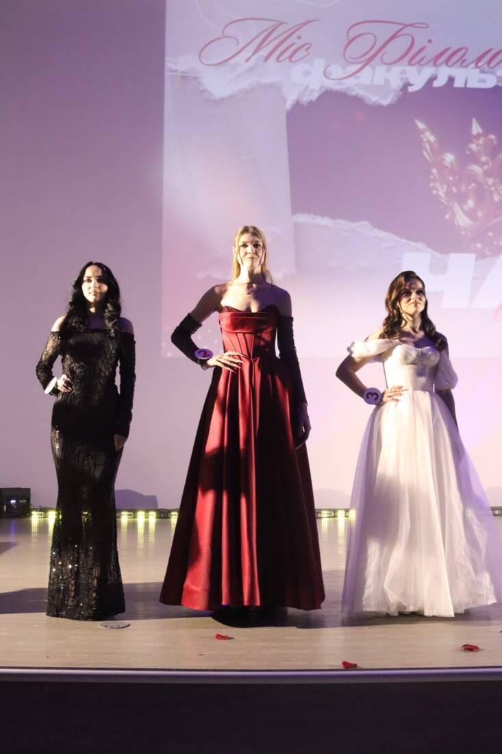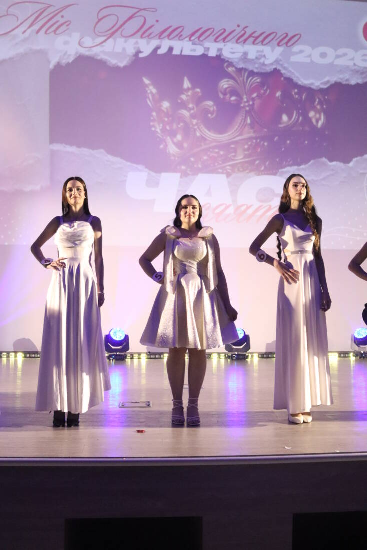Головна нагорода вечора – корона «Міс філологічного факультету 2026» – дісталася учасниці №1 Марті Гудошніковій, яка переконала суддів і глядачів своєю харизмою, упевненістю й інтелектом.