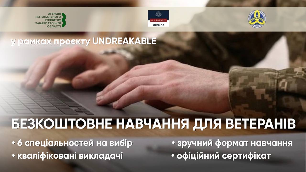 Проєкт «Незламні: досвід США для освітньої реінтеграції ветеранів» реалізується Агенцією регіонального розвитку Закарпатської області за підтримки Посольства США в Україні.