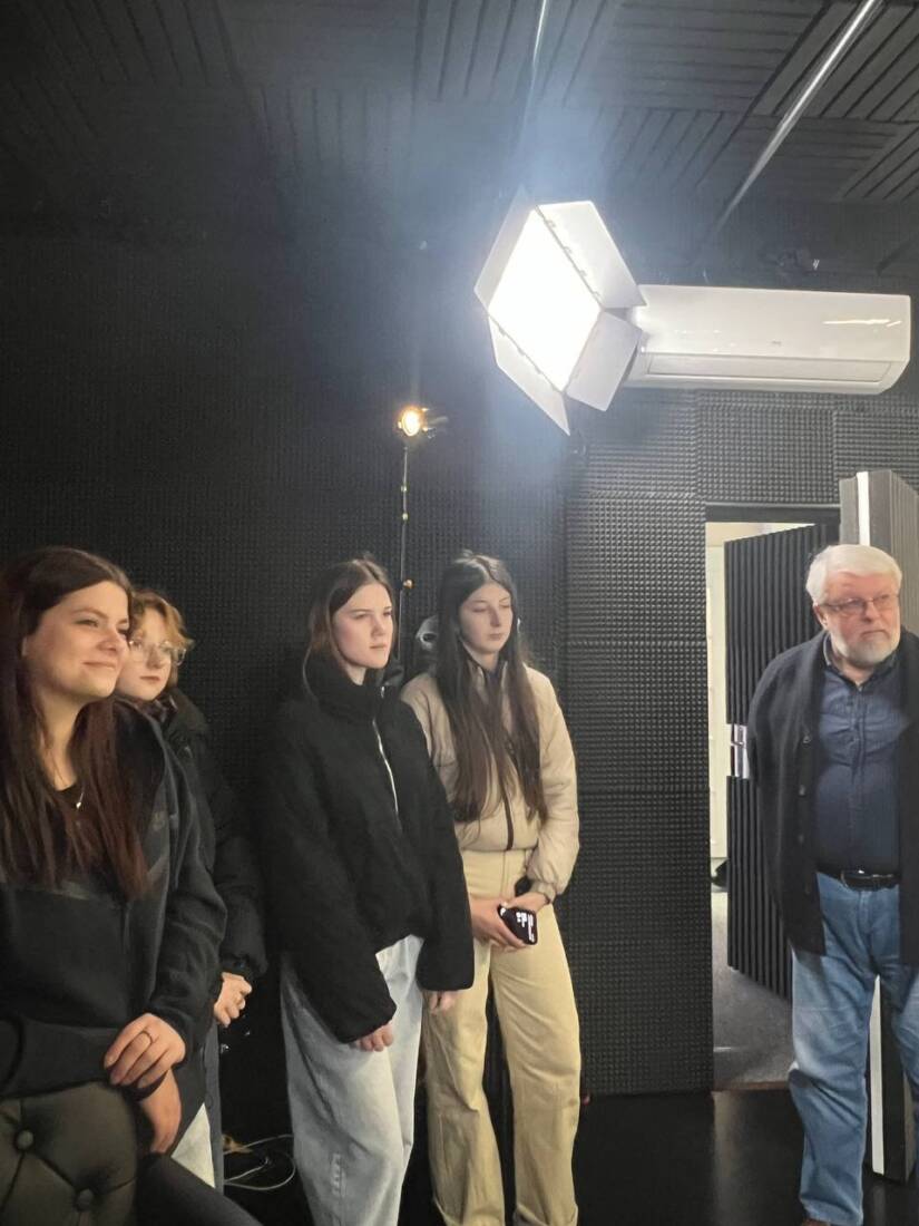 Під час навчальної екскурсії, що організувала професорка Галина Шумицька в межах курсу з медіаграмотності, молодь зазирнула в ньюзрум, попрацювала з телесуфлером і розпитала команду про стандарти двомовного мовлення