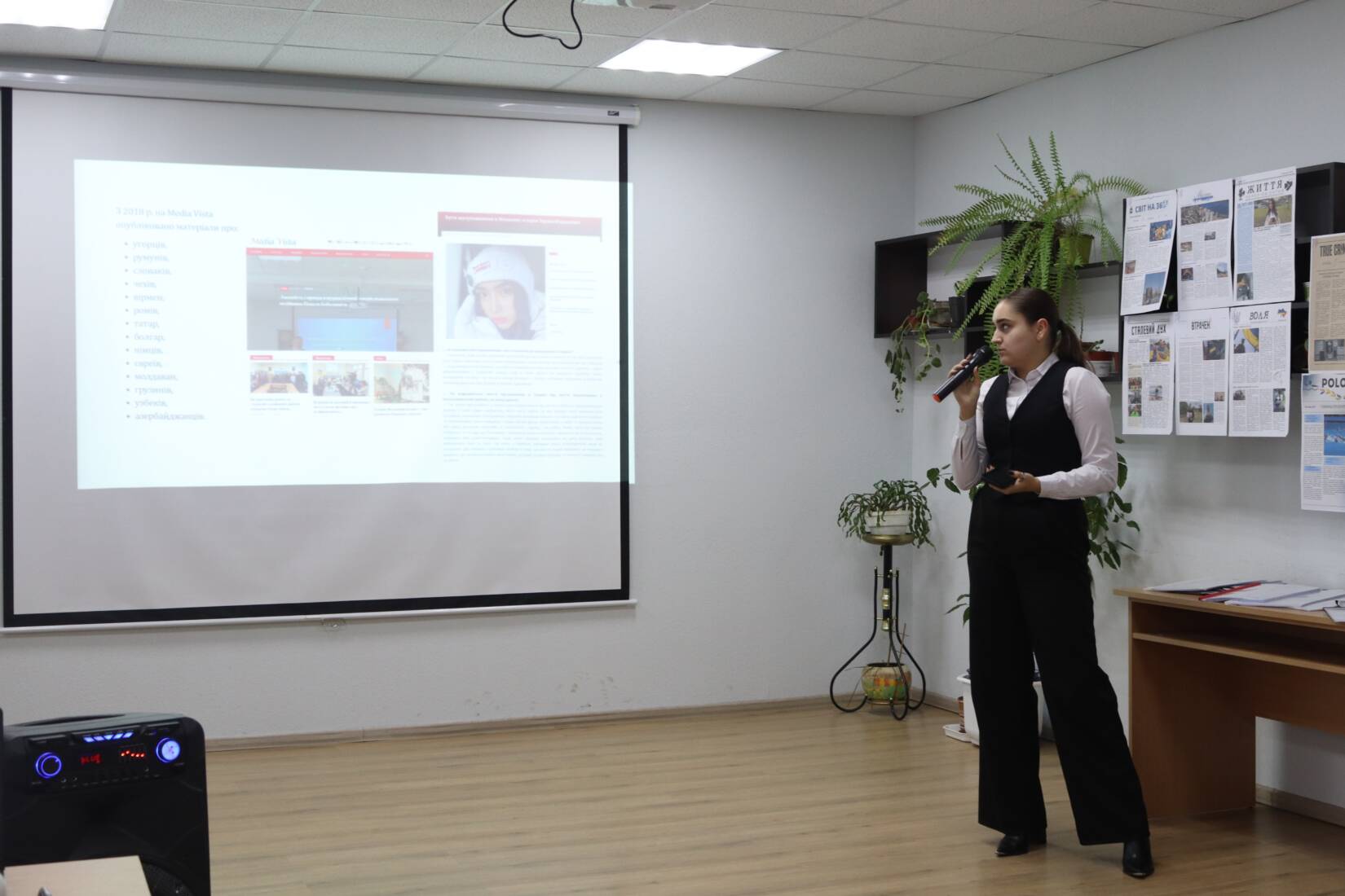 Магістрантки 1-го року навчання Рената Яцко та Лілія Марковці розповідали, як їхня група цього семестру проводила уроки з медіаграмотності для школярів і студентів. Також вони створювали медіапроєкти: новинну сторінку «Активна молодь Закарпаття», сайт із читацькою спільнотою «Ще одна сторінка» та серію інтерв’ю зі спортивними журналістами на війні. Новою дисципліною стала «Арткритика», в межах якої студенти писали рецензії на книги та створювали власні блоги.