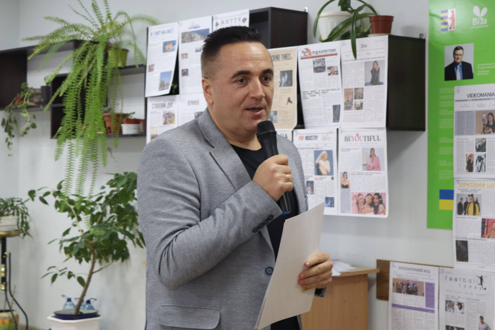 Вітав присутніх завідувач кафедри журналістики Євген Соломін: «Сьогодні хочемо показати вам те, що ми всі разом створювали ці місяці, над чим працювали. Зізнаюся, навіть я не знаю, що саме покажуть студенти. Це буде цікаво послухати, побачити й оцінити. Хочеться почути ваші думки, чи в правильному напрямку ми рухаємося». Також завкафедри нагородив дипломами, подяками студентів, які мають значні досягнення.