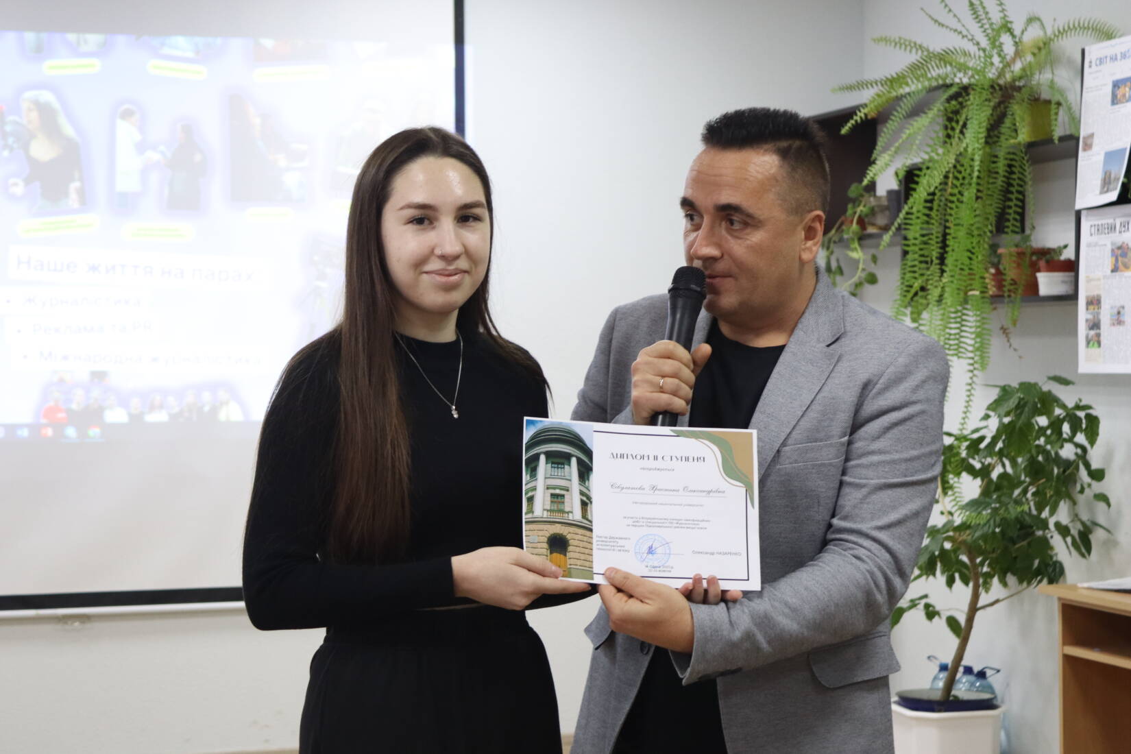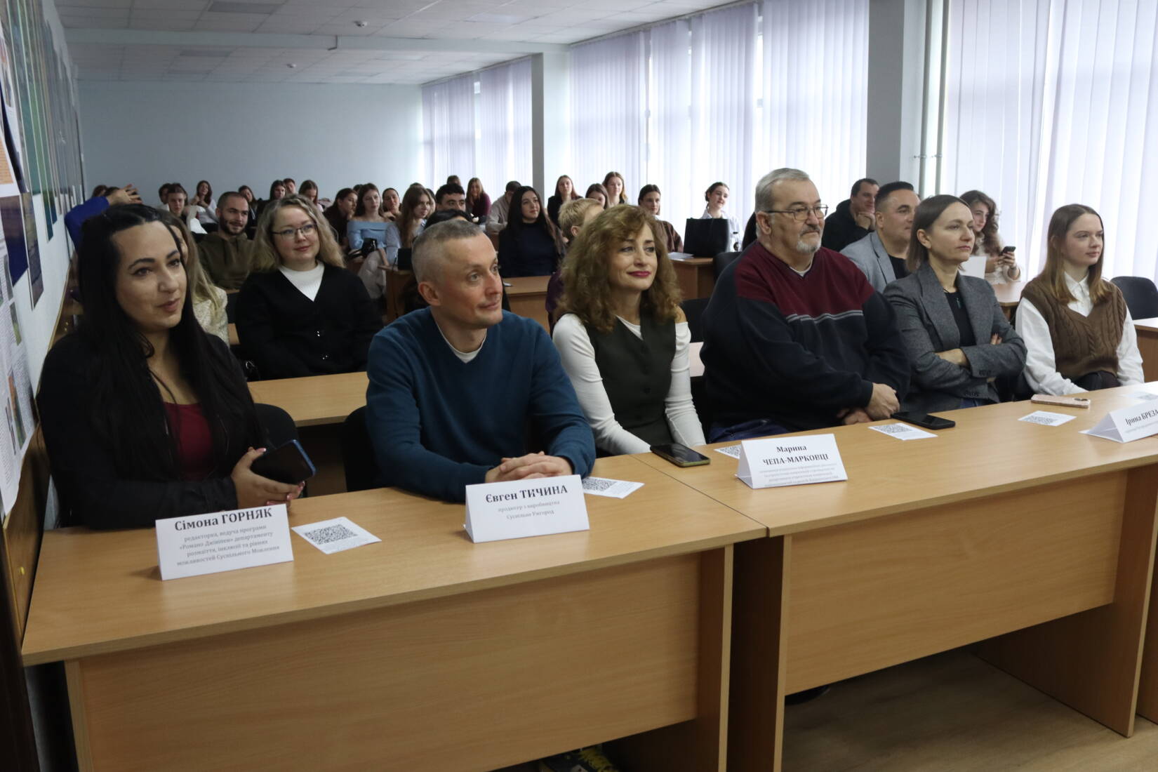 Другокурсниця Аліна Глуханич представила напрацювання групи з дисципліни «Етнічна та гендерна толерантність». Студенти створили серію статей та інтерв’ю про національні меншини, відеопроєкт про сліди різних етносів в Ужгороді, записували тематичні подкасти й навіть відвідали Генеральне консульство Угорщини в Ужгороді.