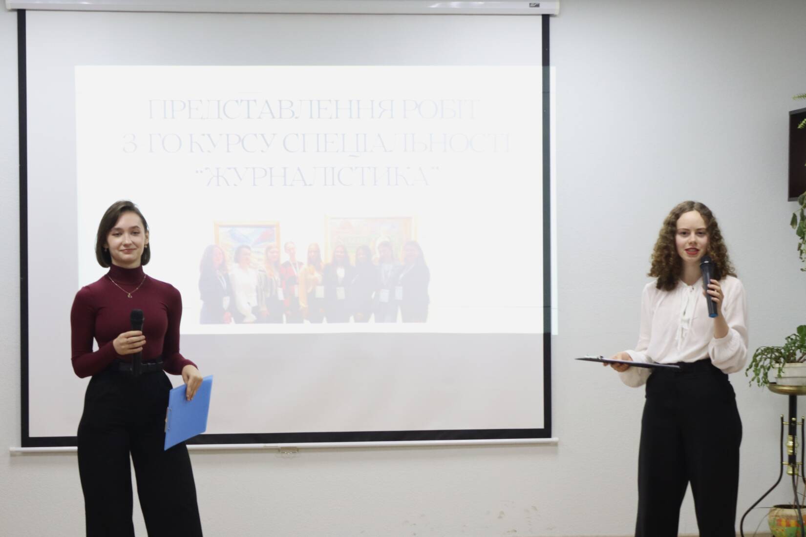 Третьокурсниці Софія Сливка і Валерія Мельник продемонстрували фрагменти своїх робіт у галузі тележурналістики. На дисципліні «Історія української журналістики» вони відзняли серію документальних відео про відомих діячів і видання. У межах курсу «Пропаганда та контрпропаганда» створили серію YouTube Shorts, де спростовували популярні російські наративи та ін. Їхні колеги зі спеціальності «Реклама та зв’язки з громадськістю» підготували серію відеоінтерв’ю «Повіш ми дашто 2.0» з успішними випускниками УжНУ до 80-річчя університету.