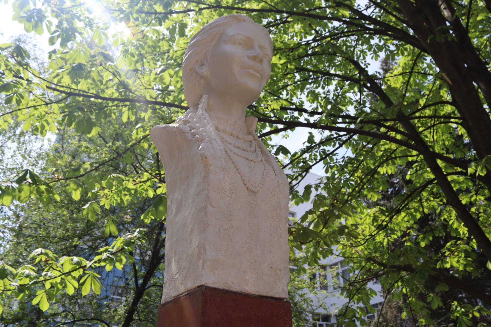 Особливістю погруддя є шеврон 128-ї окремої гірсько-штурмової Закарпатської бригади, розміщений на вишиванці поетеси, – як данина пам'яті й удячності тим, хто сьогодні боронить Україну