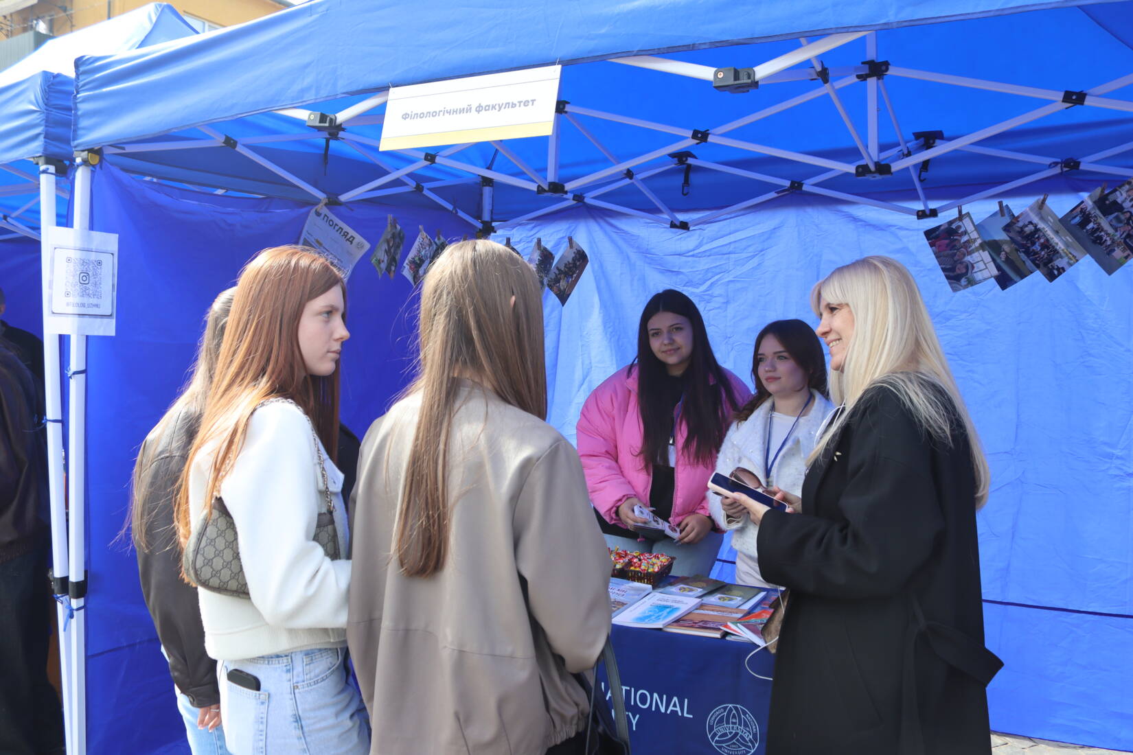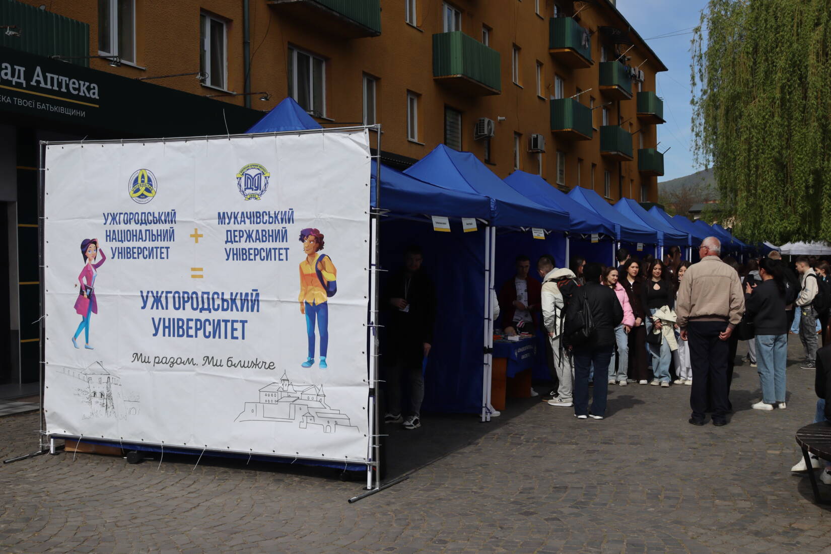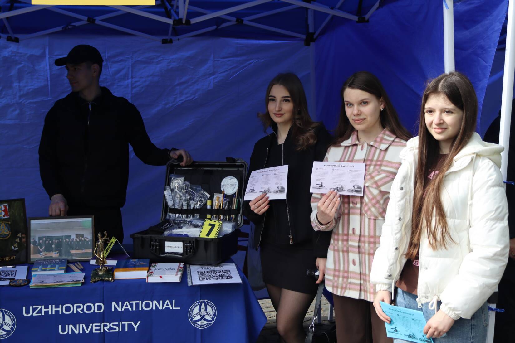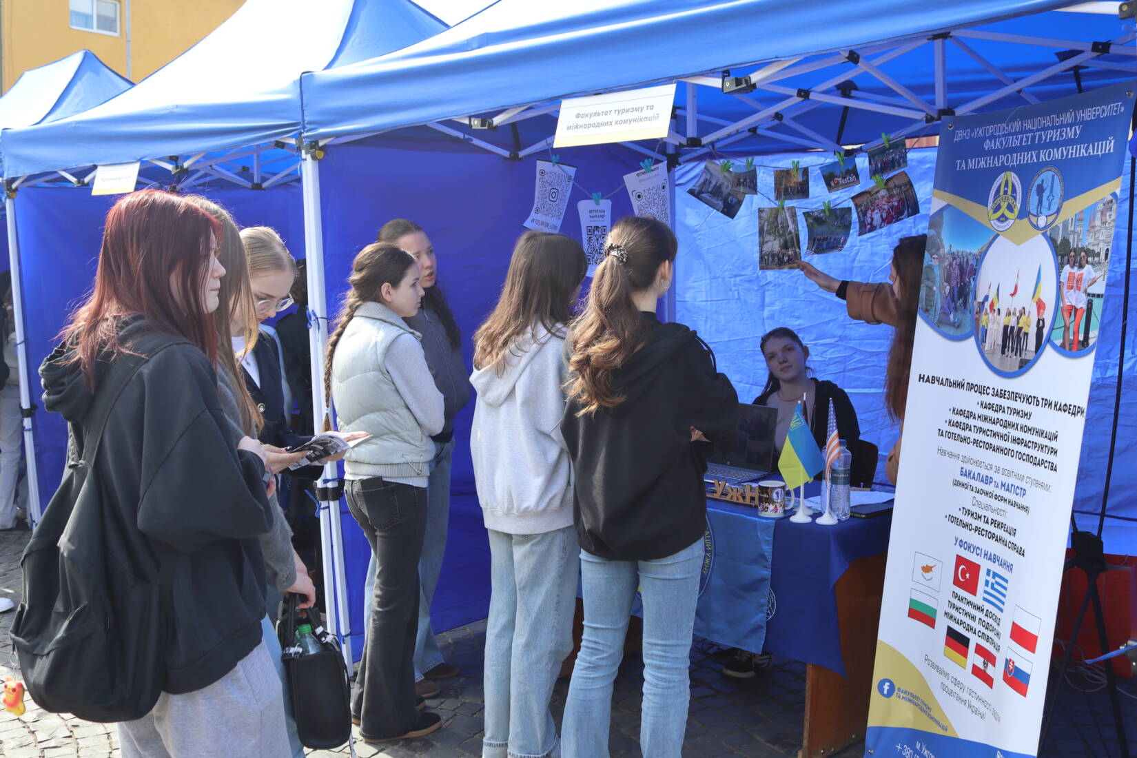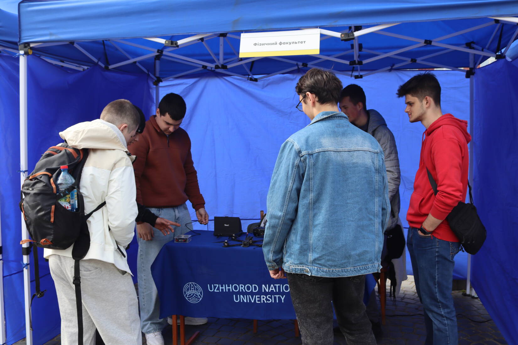 Кожен факультет у своєму наметі облаштував окремий простір, де учні могли поспілкуватися зі студентами й викладачами, ознайомитися з навчальними матеріалами, дізнатися більше про освітні програми та умови вступу. Окремо працював намет приймальної комісії, де консультанти відповідали на запитання про вступну кампанію, бюджетні місця та особливості подання документів. Під час зустрічі представники УжНУ презентували широкий спектр спеціальностей – від гуманітарних і суспільних наук до природничих, технічних і медичних напрямів.