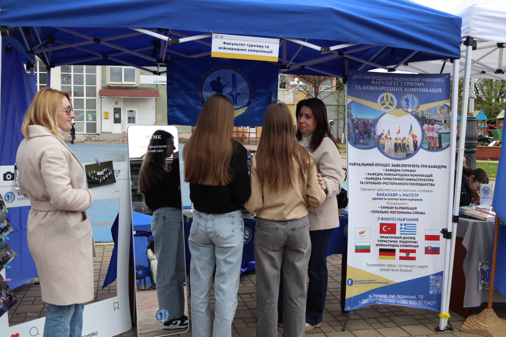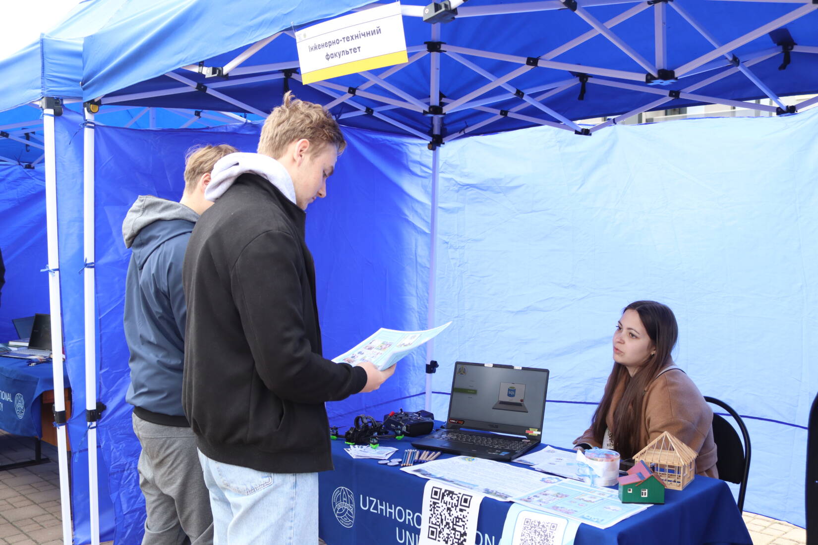 Університети підготували інтерактивні зони: факультет інформаційних технологій УжНУ пропонував зіграти «у футбол» роботом, факультет історії та міжнародних відносин представив справжні археологічні знахідки, а факультет здоров’я та фізичного виховання ознайомив із реабілітаційним обладнанням. Деякі начальні підрозділи також облаштували фотозони.