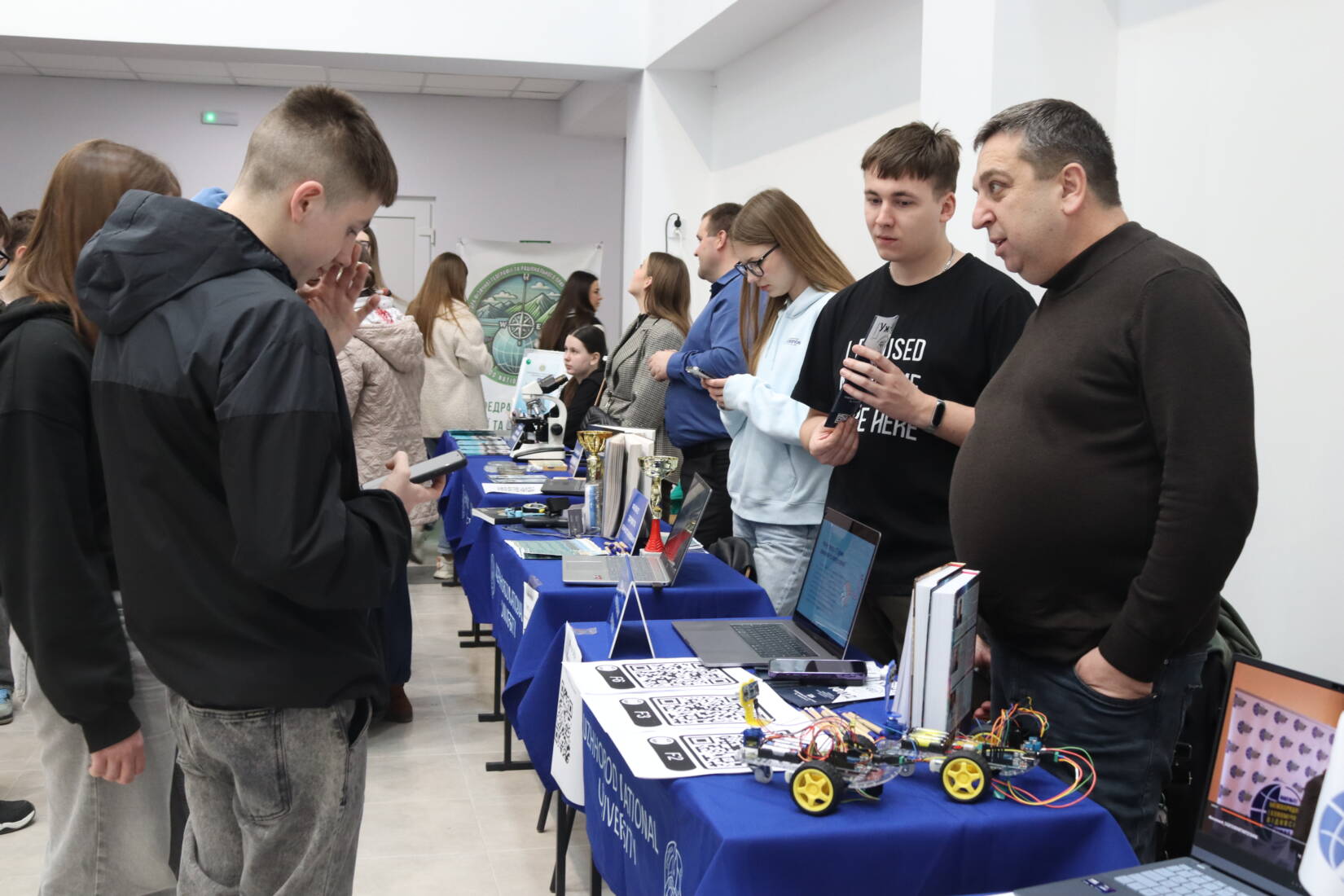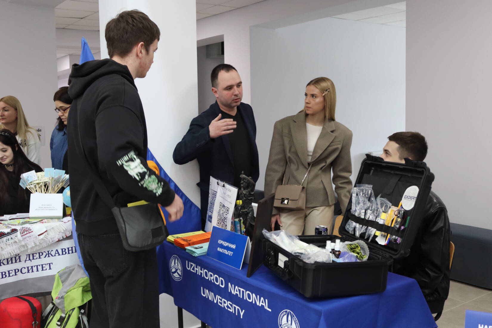 Кожен підрозділ знаходив свій спосіб зацікавити старшокласників. Біля столу медичного факультету учні вчилися правильно робити непрямий масаж серця. Поряд факультет математики та цифрових технологій пропонував зіграти в комп’ютерні ігри. Географи демонстрували роботу з землеміром. Фізики дивували можливістю поспостерігати за польотом дрона через спеціальні окуляри. Філологи проводили мовні ігри.