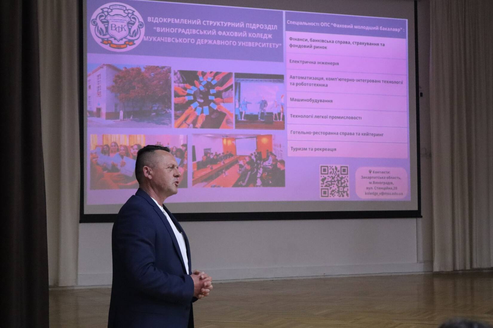 Окрему увагу приділили локальному освітньому осередку. Директор відокремленого структурного підрозділу «Виноградівський фаховий коледж Мукачівського державного університету» Йосип Іваніга презентував можливості навчання у підрозділі.