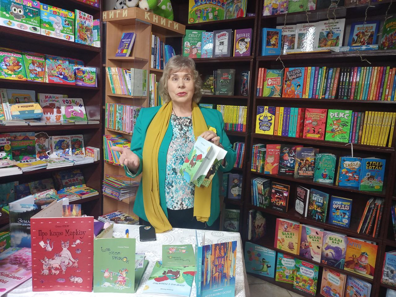 У творчому доробку пані Олени 13 збірок, 4 з яких – дитячі: «Сонечко і лошатко», «Ішов лісом їжачок», «Про кицю Маркізу» та «Про дівчинку Оленку». Саме останні поетеса і презентувала за прилавком книгарні «Кобзар». За словами авторки, особливою любов’ю читачів користуються збірки «Про кицю Маркізу» та «Сонечко і лошатко», яку, до слова, поетеса перевидала у 2025 році. Цікаво, що герой/сюжет кожного дитячого вірша має свій реальний прототип чи ситуацію, що її спостерігала поетеса. Наприклад, збірка «Про кицю Маркізу», присвячена домашній улюблениці, яка прожила з родиною 17 років і одного разу навіть врятувала життя пані Олені.