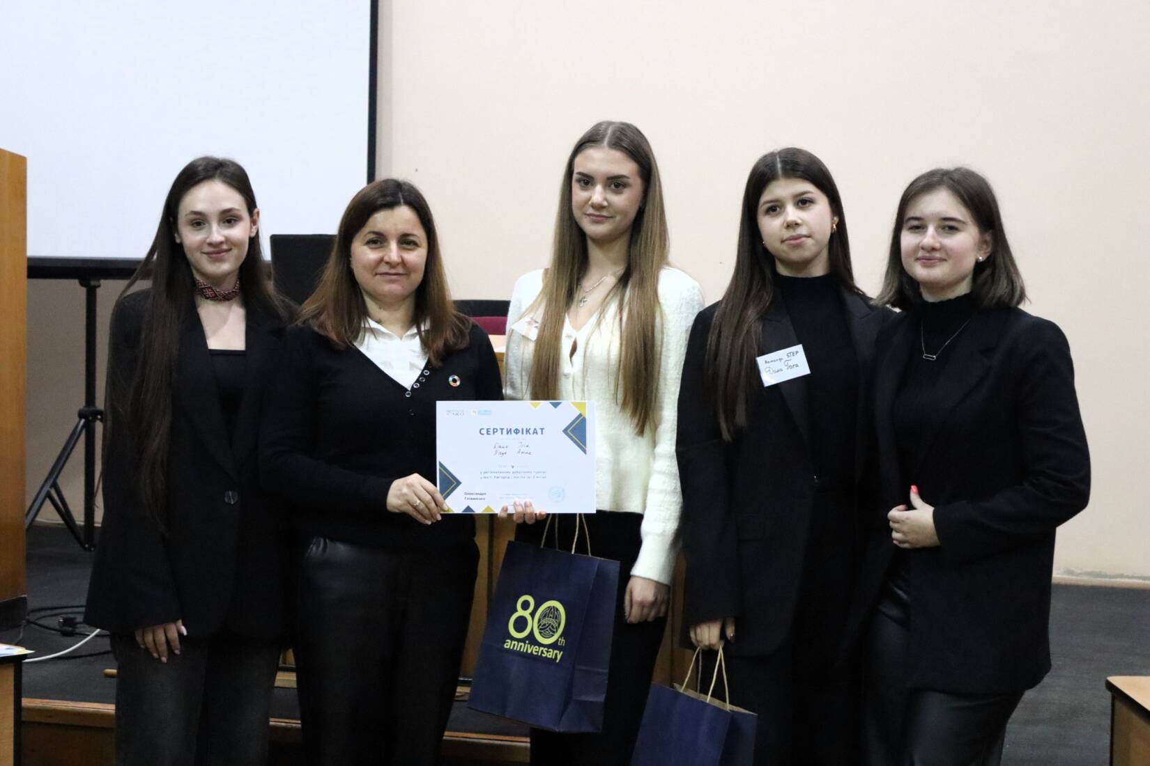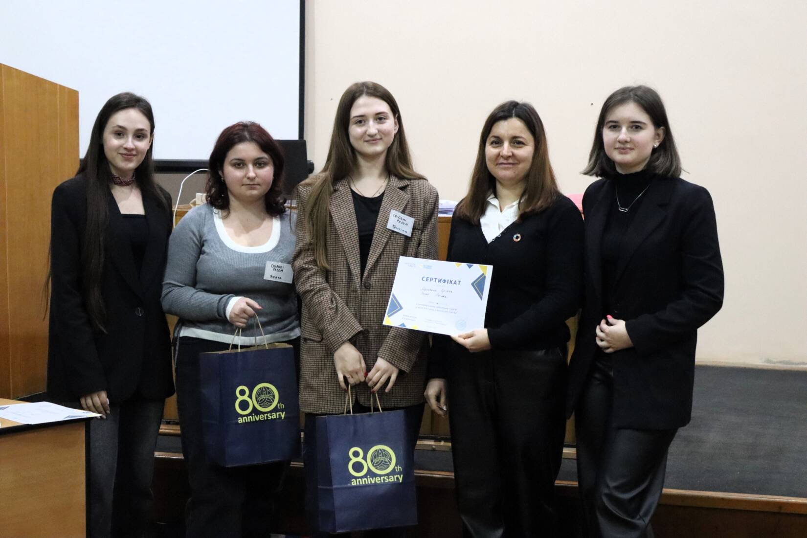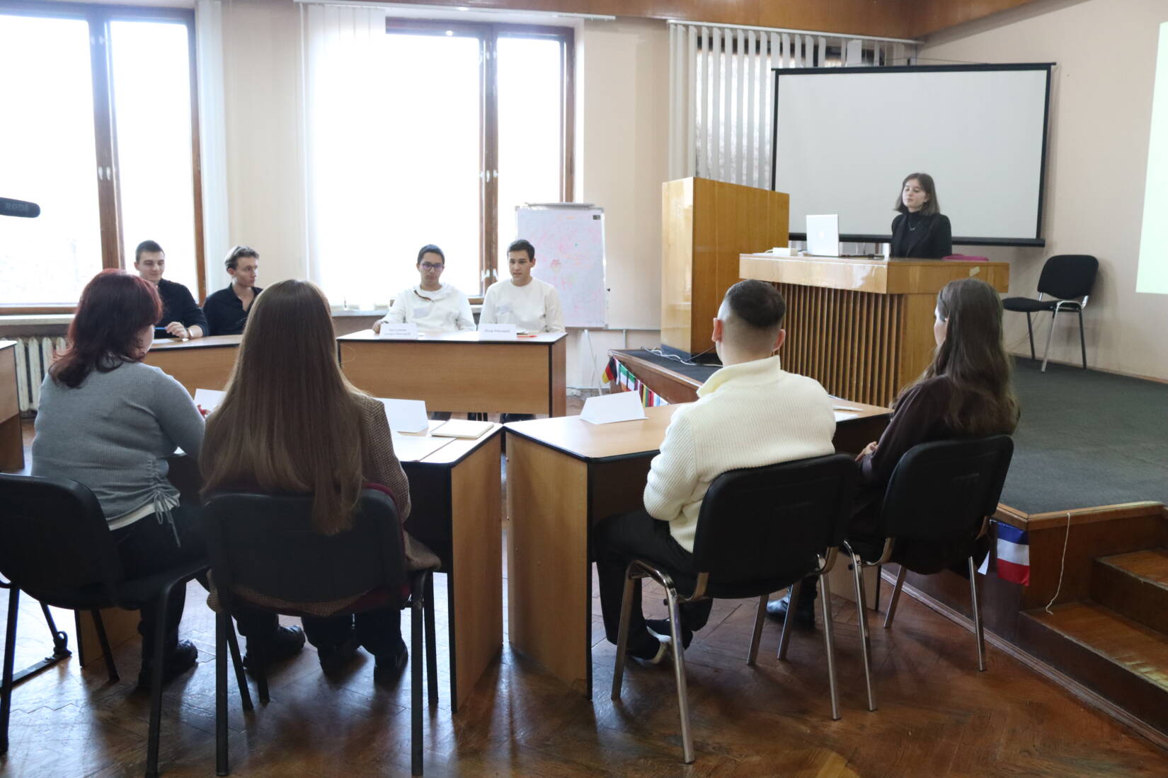 «Сьогодні ми зібралися тут, щоб спробувати себе в ролі дебатерів, згідно з визначеним британським форматом дебатів, а також – щоб обговорити актуальні теми, які резонують у суспільстві», – зазначила модераторка заходу Ганна Мелеганич, директорка Центру зі сталого розвитку УжНУ.