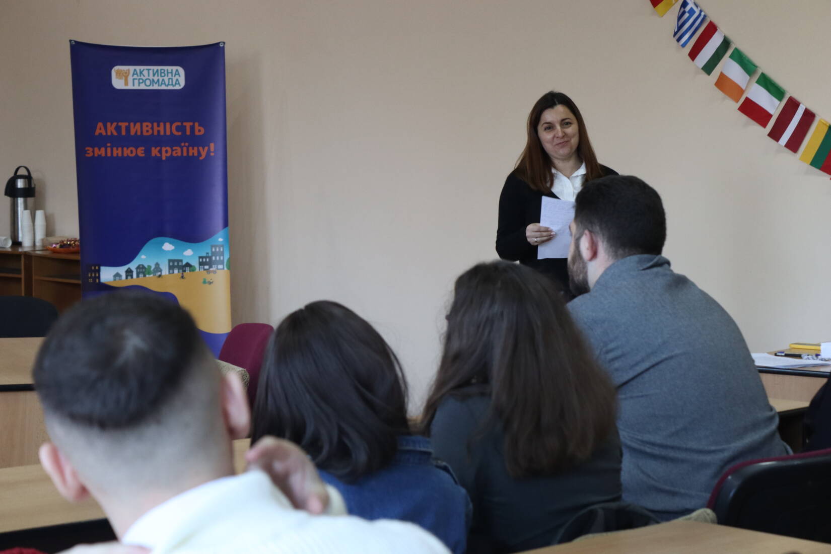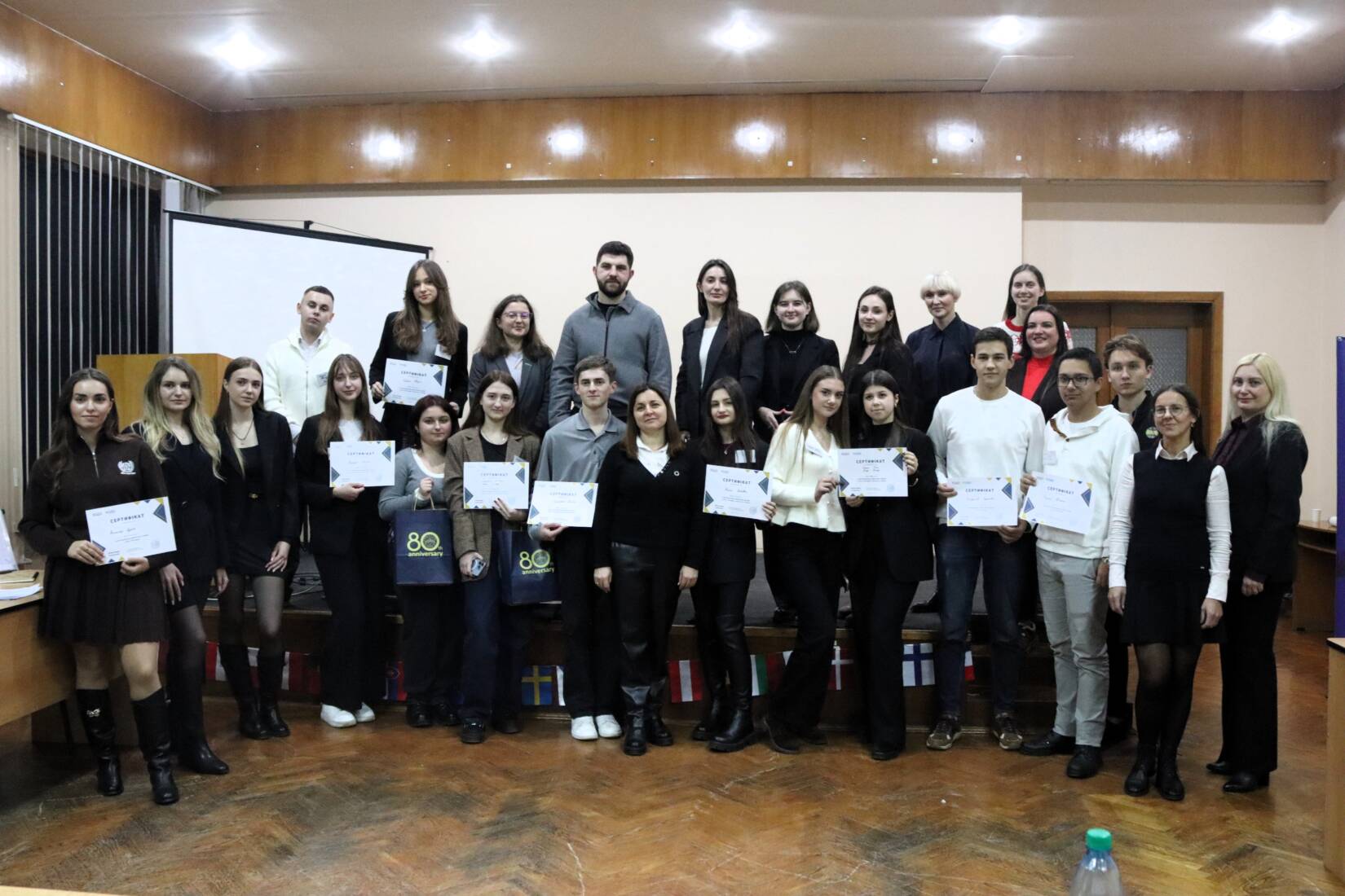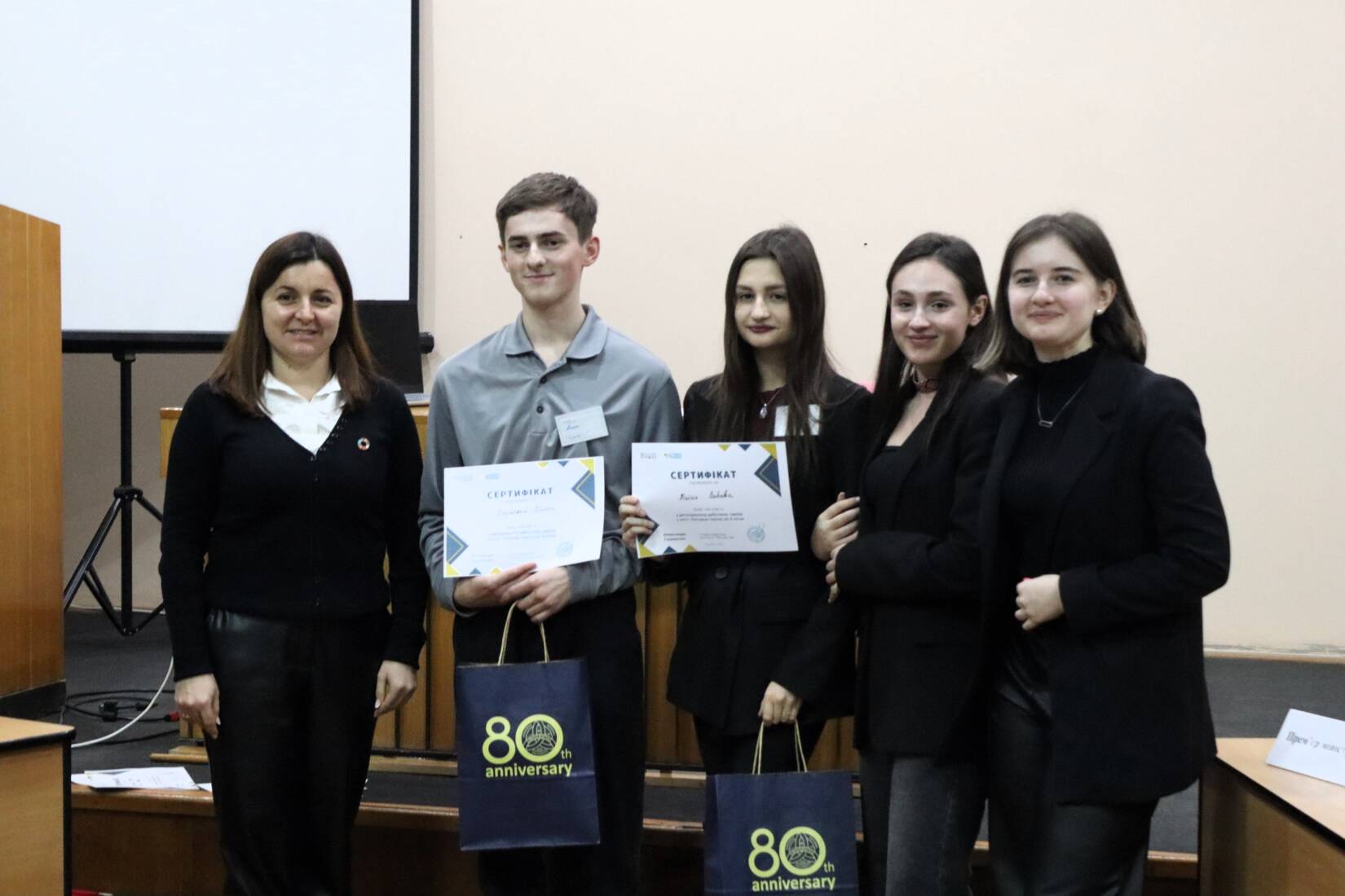 «Сьогодні ми зібралися тут, щоб спробувати себе в ролі дебатерів, згідно з визначеним британським форматом дебатів, а також – щоб обговорити актуальні теми, які резонують у суспільстві», – зазначила модераторка заходу Ганна Мелеганич, директорка Центру зі сталого розвитку УжНУ.